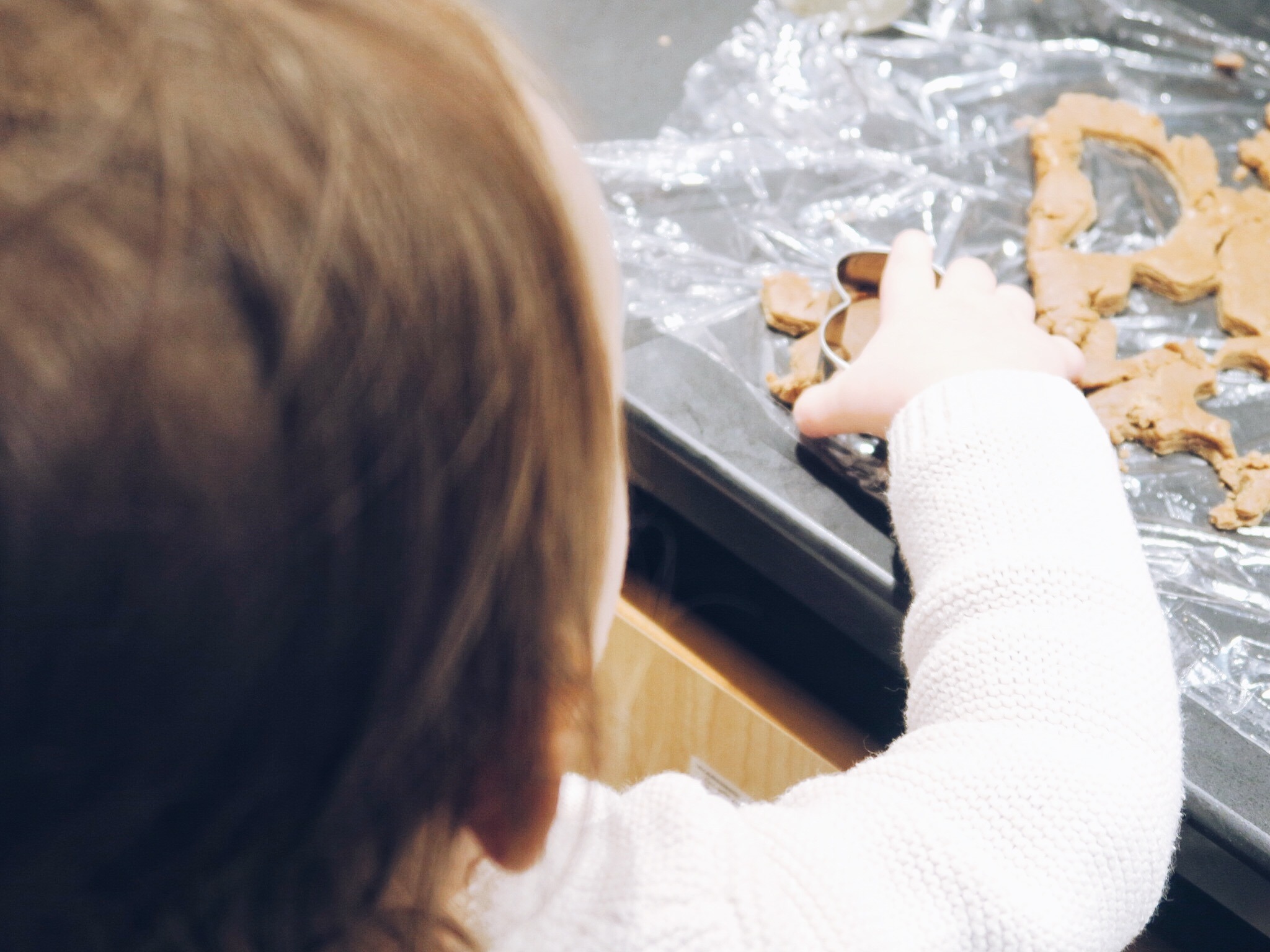The dough is really easy to make, and once you mix in the dry and wet ingredients you will just need to knead it a bit with your hands and roll it out. Then the fun of cutting your cookies can begin! 🙂